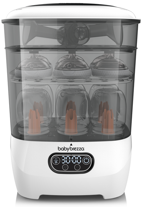 La gamme de stérilisateurs et de sécheurs de biberons Baby Brezza vous aide à nettoyer facilement et rapidement les biberons de votre bébé, les pièces de votre tire-lait et d'autres produits pour bébé. Stériliser les produits de votre bébé et les sécher en toute sécurité est essentiel pour aider votre bébé à rester en bonne santé car son système immunitaire est encore en développement. Les stérilisateurs de biberons et les stérilisateurs-sécheurs Baby Brezza sont beaucoup plus faciles et sûrs à utiliser que d'autres solutions de stérilisation comme l'ébullition, le passage des produits sous l'eau chaude ou le micro-ondes, qui nécessitent beaucoup plus de temps et peuvent même entraîner des brûlures accidentelles. Quel que soit le stérilisateur de biberons que vous choisirez, vous pourrez stériliser facilement et plus rapidement les biberons, les sucettes et les pièces de tire-lait de votre bébé pour l'aider à rester en bonne santé.